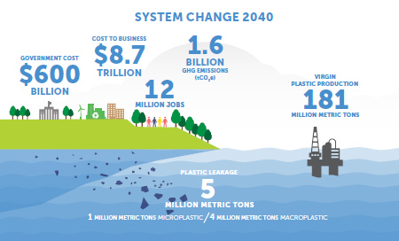 按照现在的水平测算,至2040年垃圾每年流出量为2900万吨,系统整体改善后每年则为500万吨(The PEW Charatable Trusts and SYSTEMIQ, 2020. Breaking the plastic wave_Comprehensive assessment of pathways towards stopping ocean plastic pollution)