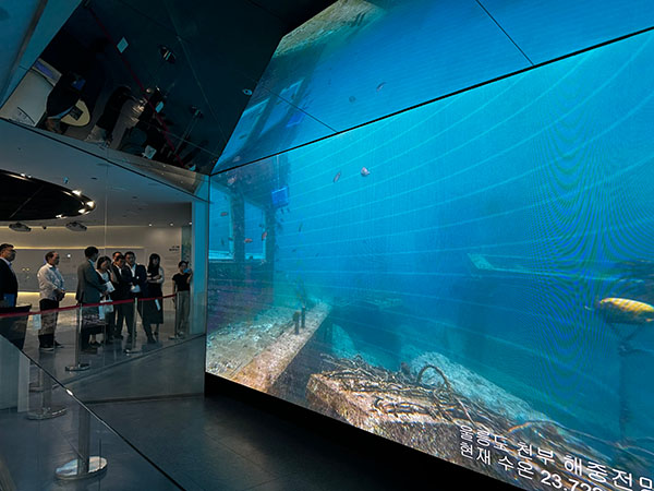 研讨会后,基地负责人金润培带领中方课题组考察了KIOST郁陵岛独岛海洋研究基地,介绍了基地的主要工作职责,并介绍了郁陵岛和独岛的地质地貌、生态环境、经济产业、发展历史等内容。课题组还乘船赴独岛周边海域考察海洋生态保护区现状。