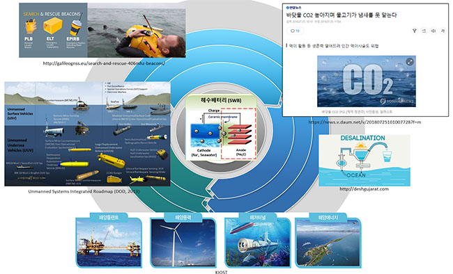 해양에서 사용할 수 있는 안정적인 이차전지인 해수배터리는 국내 연구진에 세계최초로 개발되고 있는 첨단 기술이다. 기존 이차전지의 한계점 (열 안정성, 가격 경쟁력)을 해결할 수 있는 차세대 핵심 원천기술로써, 해양환경에 적용되는 리튬이온 또는 납축전지 시장을 대체하는 것이 가능하다. 이를 통해, 해양기기 분야 신산업 창출이 기대되며, 저렴한 소재와 대용량 셀의 양산기술 확보 시 장기적으로 에너지저장 산업 및 대용량 ESS 산업의 확대와 이로 인한 일자리 창출이 가능할 것이다.