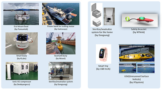 장시간 실해역 운용에 적합한 해수배터리 시스템 개발이 괄목할 만한 진척을 이루었으므로 다음 단계는 해수배터리를 실제 해양 장비에 적용하여 track-record를 확보하는 것이다. 2020년도에는 해수배터리를 적용해 보고자 하는 여러 업체와 협력하여 해수배터리를 적용한 친환경 레져용 보트, 소형선박용 보조전력 공급장치, 해양 환경 모니터링용 다목적 부이, 항로표지용 등부표, 200L 급 해수 살균중화 시스템을 개발하였다. 또한, 2021년도에는 해수배터리를 적용한 5L급 에너지저장 및 살균·중화시스템, 해양 조난자 안전 관리 시스템, 물놀이 토이 밴드, 관측 및 탐지용 무인수상정을 개발한바 있다.