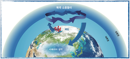 그림 6. 북극의 온난화로 인한 중위도 한파 모식도