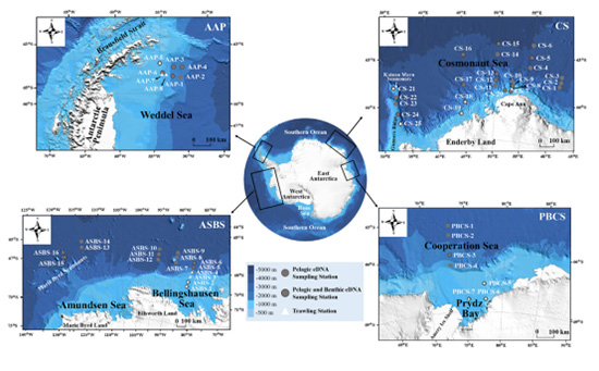 연구팀은 중국 제37차 남극과학탐사(2020-2021년)를 통해 남극반도 주변 해역, 서남극의 아문센해-벨링스하우젠해, 동남극의 프리즈만해, 우주비행사해 등 전형적 해역에서 어류 생체 및 eDNA 샘플을 동시에 채집하며, 남극 전체 규모의 어류 다양성 패턴에 대한 eDNA 메타바코딩 평가 분석을 최초로 수행하였다. 연구를 통해 아문센해-벨링스하우젠해의 잠재적 어류 다양성 핫스팟과 아남극 어류의 남향 확장 현상을 규명하였으며, 기후변화 배경에서 남극 어류 다양성 패턴의 장기적 변화를 이해하는 새로운 시각을 제공하였다. 연구팀은 향후 다양한 형태의 어망, 해저 원위치 영상 관측, eDNA 메타바코딩 등의 방법을 통하여 샘플링 전략과 분석 과정을 최적화하고, 남극 대양 어류 생태 기준선을 구축하며, 다중 규모의 다양성 시공간 동태를 추적함으로써 기후변화가 남극 해양 생태계에 미치는 영향 메커니즘을 해석해야 한다고 제안하였다.